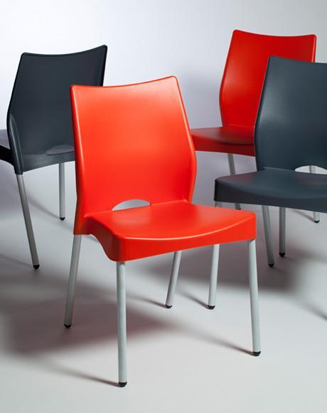 Monocasco de polipropileno inyectado con cuatro patas tubulares color aluminio.